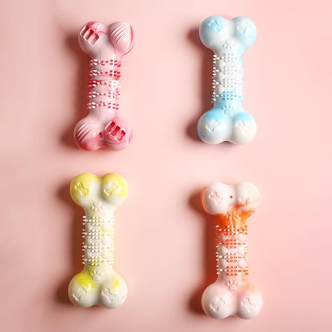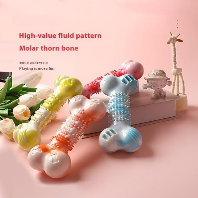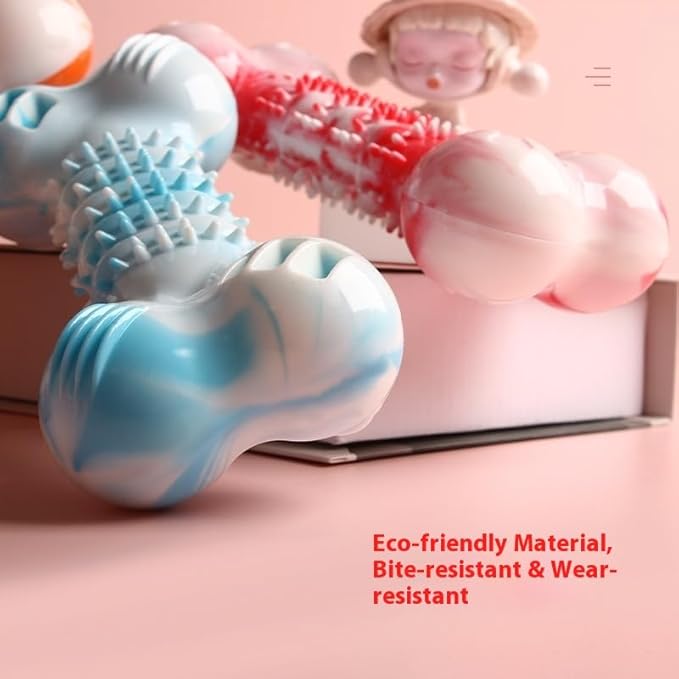 Satisfy your dog's natural urge to chew while promoting excellent oral hygiene with our Two-Tone Spiked Bone Toy. Crafted from high-elasticity, non-toxic TPR material, this durable bone features a unique spiked texture that massages gums and helps scrape away plaque and tartar during play. With its adorable paw-print design and an integrated squeaker that triggers instant excitement, it's the perfect interactive tool to reduce boredom and prevent destructive chewing around your home.