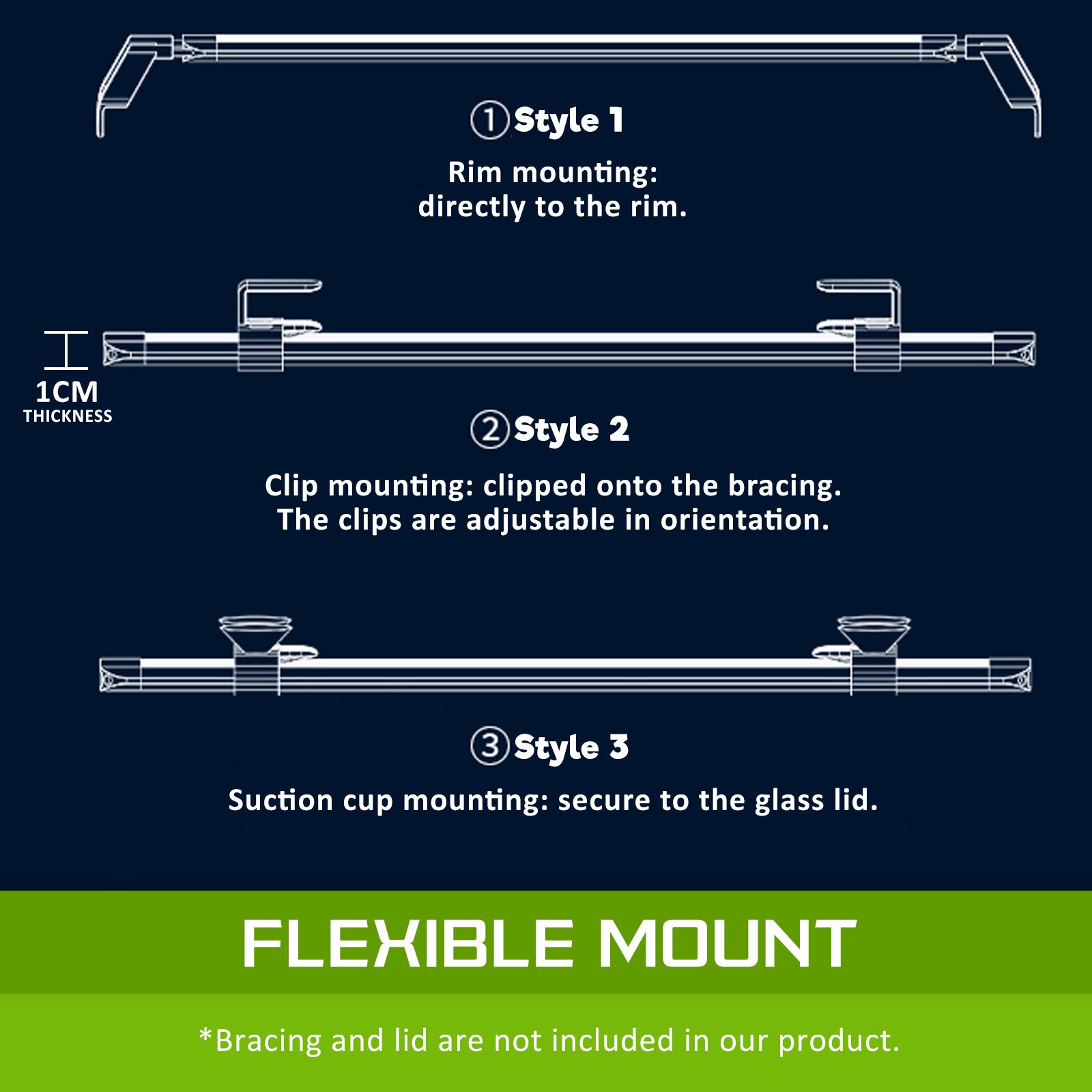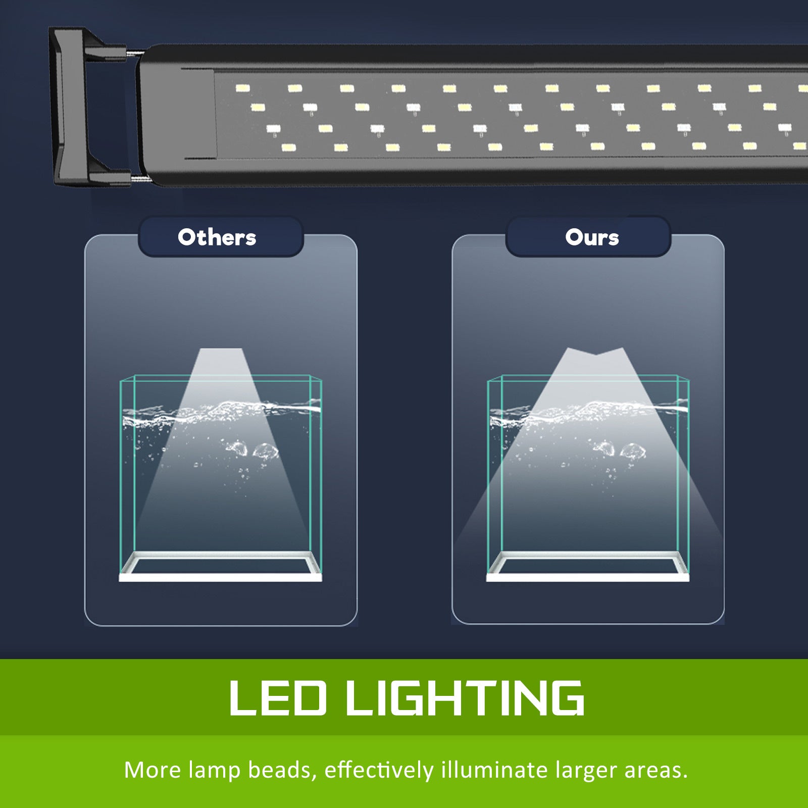 The tank is made from ultra-clear low iron STARFIRE glass with 5mm thickness and this is much more scratch resistant and clearer than acrylic fish tanks. This special glass is much clearer than conventional glass and it gives your aquarium extra clarity to truly bring your fish colour! The fish tank will look even more beautiful with your decoration inside because the LED light combined with the clear glass will enhance the colour of your aquarium environment.